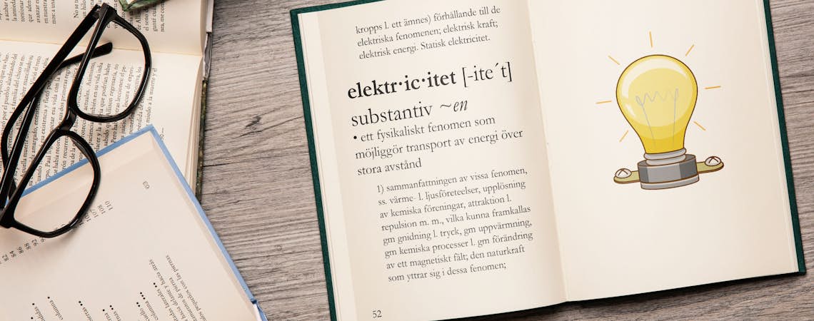 Stöter du på en massa krångliga ord, när du läser om el, elektricitet och energi? Här kan du hitta förklaringar på några vanliga begrepp som används kring el och energi. Se om du hittar förklaringen på det ord du fungerar på!