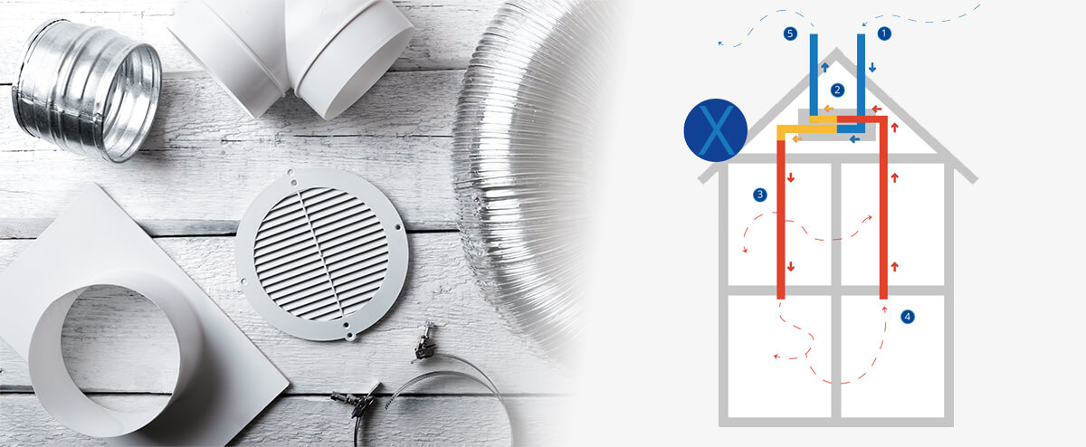 God ventilation i huset är ett måste, för att huset och familjen ska må bra. Generellt tar man in ny luft i sovrum och vardagsrum, för att sedan ventilera ut den i kök och badrum, men när ventilationen är mekanisk finns möjligheten att både ta in och ut luft i samma rum.
