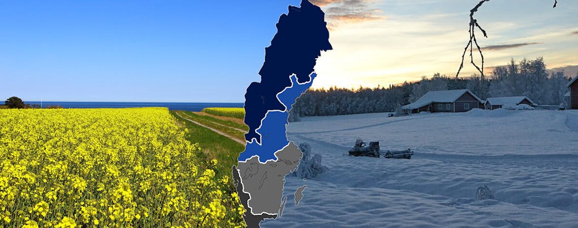 I olika delar av kunskapsbanken använder vi oss av en klassisk indelning av Sverige i fyra klimatområden. Det är för att du lättare ska kunna förstå hur klimatet där du bor påverkar din uppvärmning. Man skulle naturligtvis kunna vara betydligt mer detaljerad än så, och lokala variationer förekommer inom zonerna.
