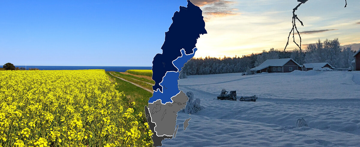 I olika delar av kunskapsbanken använder vi oss av en klassisk indelning av Sverige i fyra klimatområden. Det är för att du lättare ska kunna förstå hur klimatet där du bor påverkar din uppvärmning. Man skulle naturligtvis kunna vara betydligt mer detaljerad än så, och lokala variationer förekommer inom zonerna.