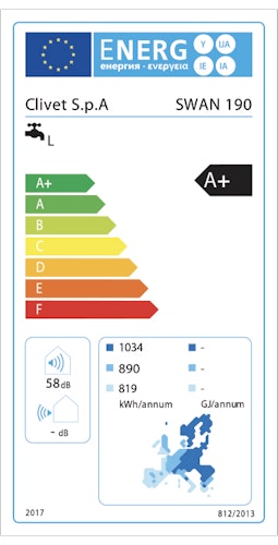 Med hjälp av märkningen ser du vilken energianvändning din tänkta värmepumpsberedare kommer att ha i de olika zonerna. Här i Sverige tittar du på den kallare mörkblå zonen. Den årliga användningen av energi anges i kilowattimmar (kWh) för elberedare samt gigajoule (GJ) för beredare som går på gas och olja. Beräkningen baseras på en standardanvändning och anges som kWh eller GJ per annum (per år). Beroende på hur mycket och länge du använder varmvatten hemma kommer dina siffror att skilja sig från standardmönstret.
