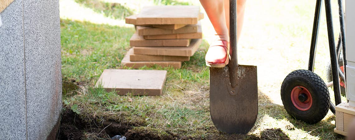 Luft-vattenvärmepumpens utedel monteras generellt på markstativ. Det behöver finnas ett plant och stabilt underlag för utedelen.