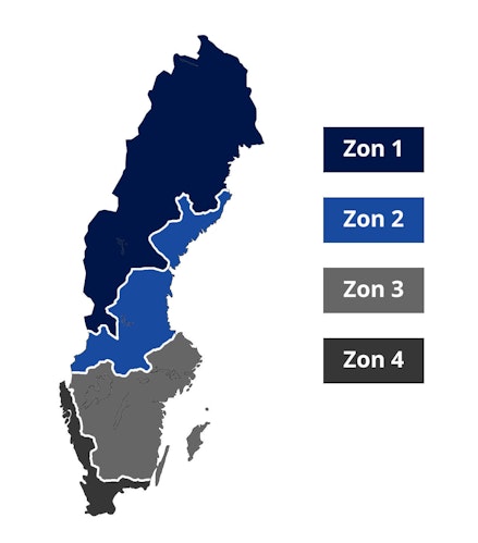 Vi har också tagit fram specifika kalkyler för olika klimatzoner i Sverige. Här kan du läsa på hur klimatet påverkar möjlig besparing, elförbrukning och återbetalningstid. Vilken klimatzon bor du i?