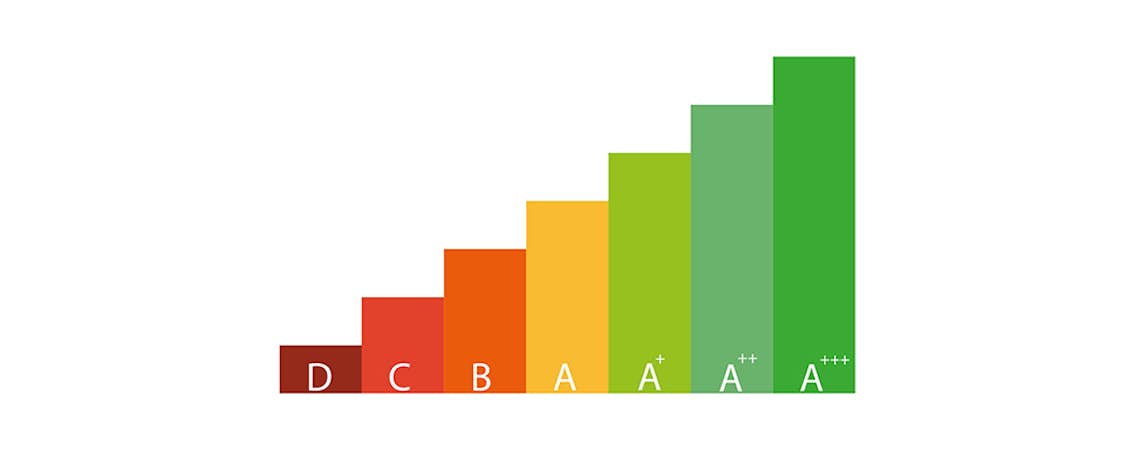 Energimärkningen på luft-vattenvärmepumpar kan vägleda dig, så att du hittar en energieffektiv produkt. Energimärkningen består både av bokstäver och färger. Den bästa energiklassen är grön och beteckningen A+++. Den lägsta energiklassen är G som är röd.