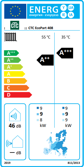 | Effekt kW vid Uppvärmning till Medelvärme/Kallt klimat | 9 kW |