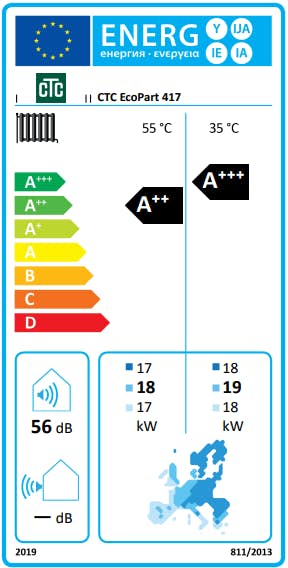 | Effekt kW vid Uppvärmning till Medelvärme/Kallt klimat | 17 kW |