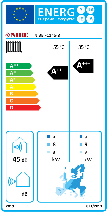 Bergvärmepump Nibe F1145 är en värmepump med mark, berg, sjö eller grundvatten som energikälla. Den levereras komplett med 9 kW elpatron och varmvattenstyrning samt styrutrustning med kommunikationsmöjlighet.