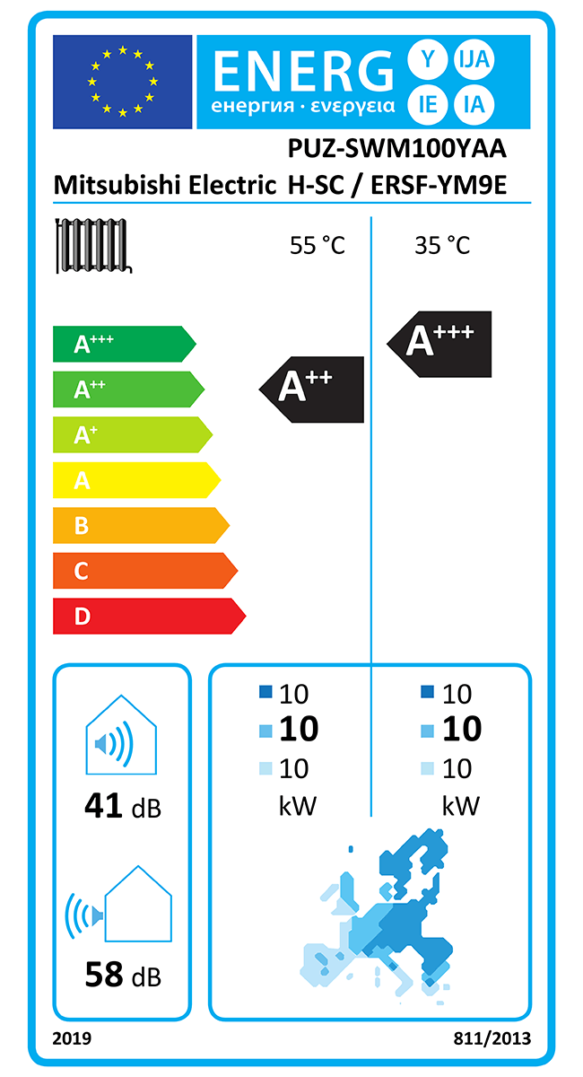 | Energieffektivitet Vattenburen Värme | A++ A |