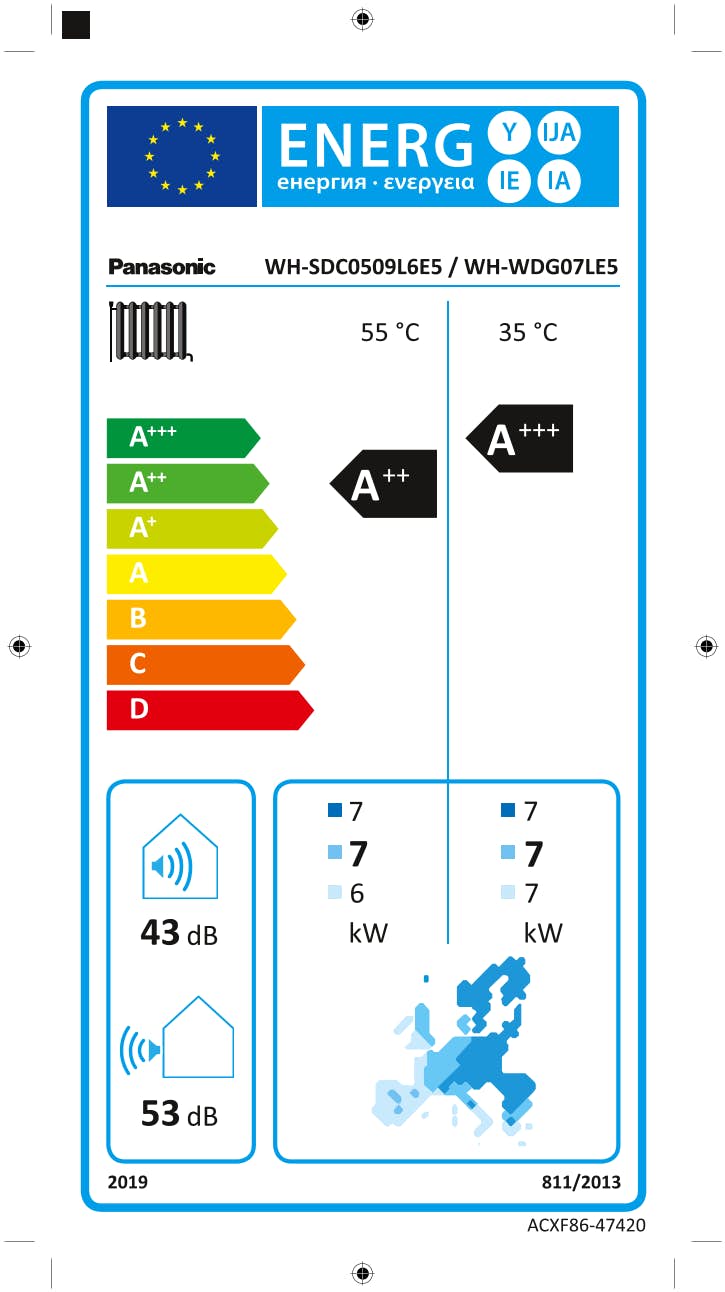 Panasonic använder R290-köldmedium (GWP 3), ett naturligt köldmedium med extremt låg klimatpåverkan. Vid 35 °C värmebetingelser uppnår systemet högsta energiklass A+++, vilket innebär maximal verkningsgrad och minimala driftskostnader. Även varmvattenproduktionen är energieffektiv och når energiklass A+.