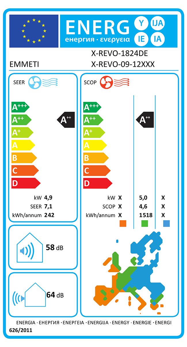 Luftvärmepump Emmeti Dual X-REVO-1824D med två innedelar.