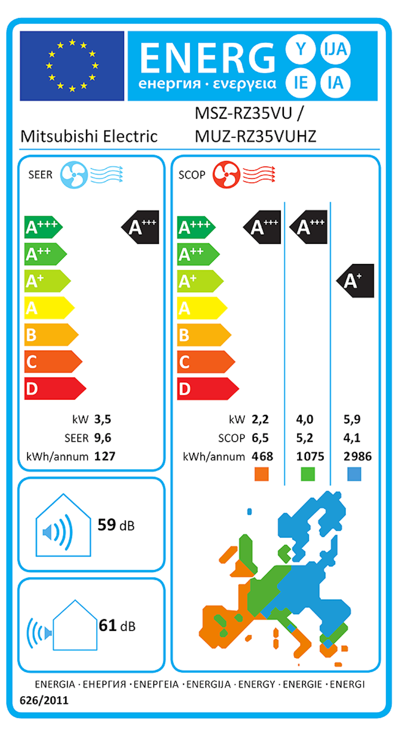 Mitsubishi ElectricSumo RZ35 6,6kW Värme A+++ SCOP 5,2 Luftvärmepump