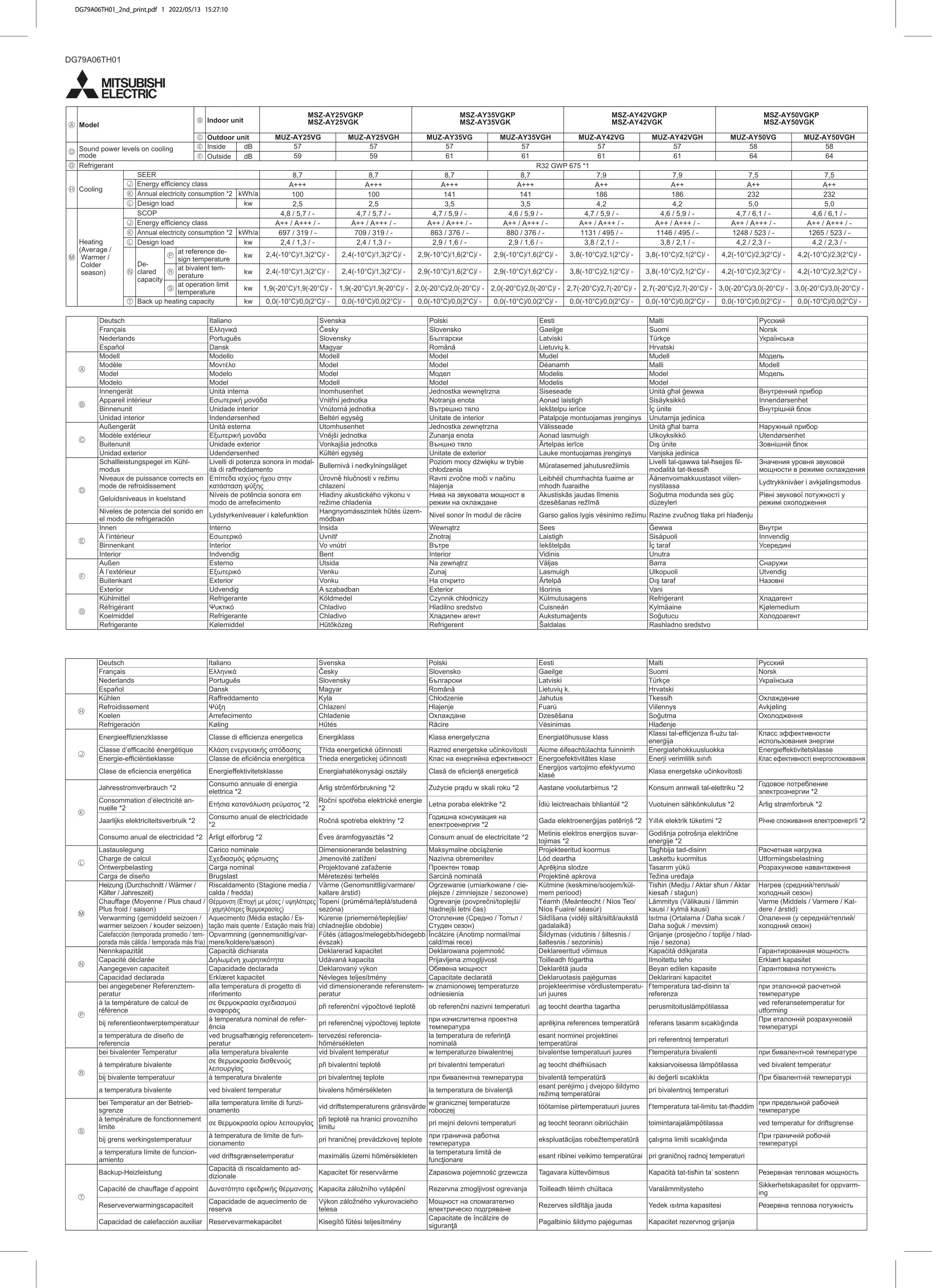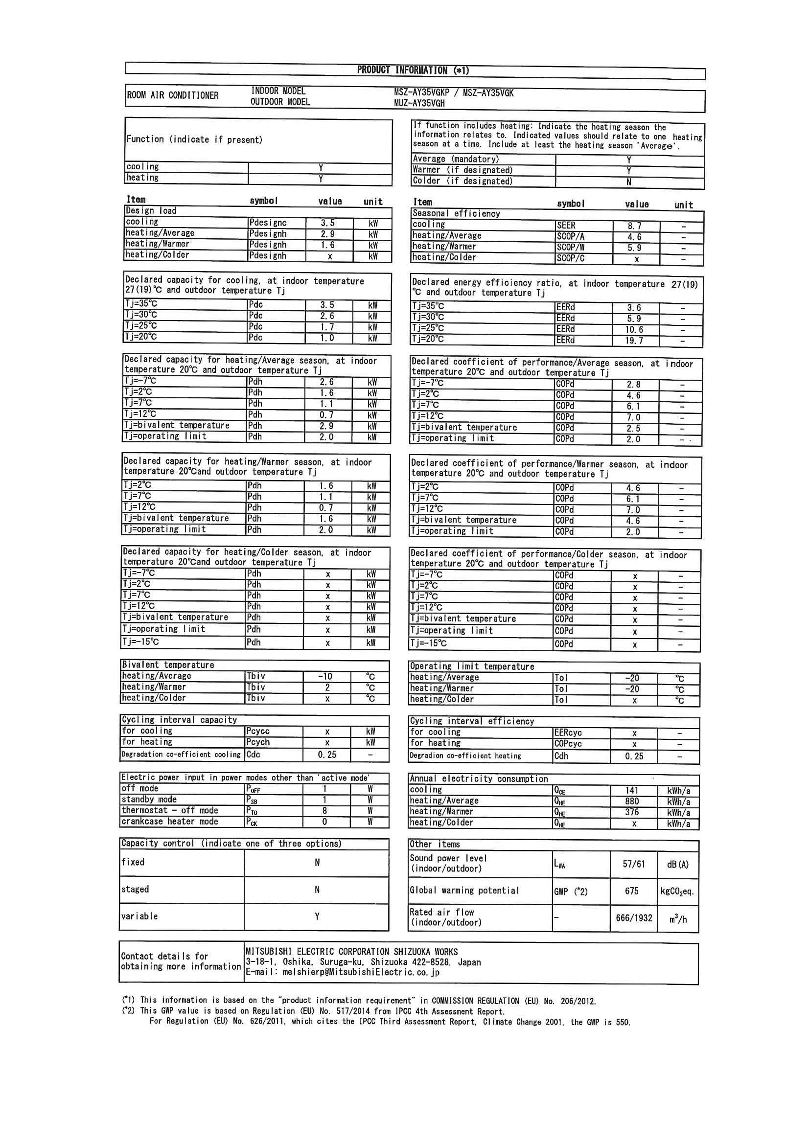 | Modell Inomhusdel | MSZ-AY35VGK-SC1 |