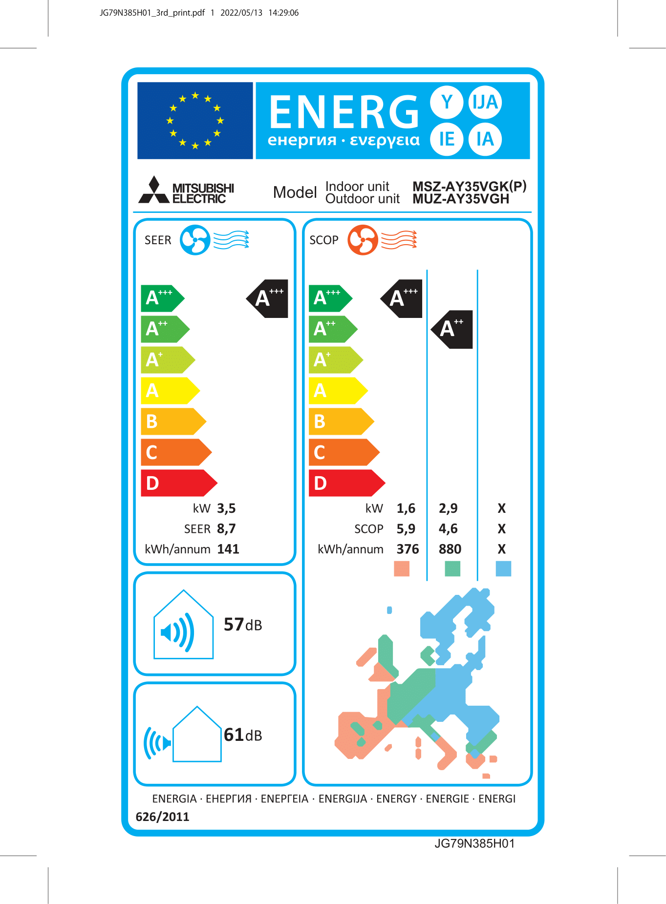 | Modell Utomhusdel | MUZ-AY35VGH-SC1 |