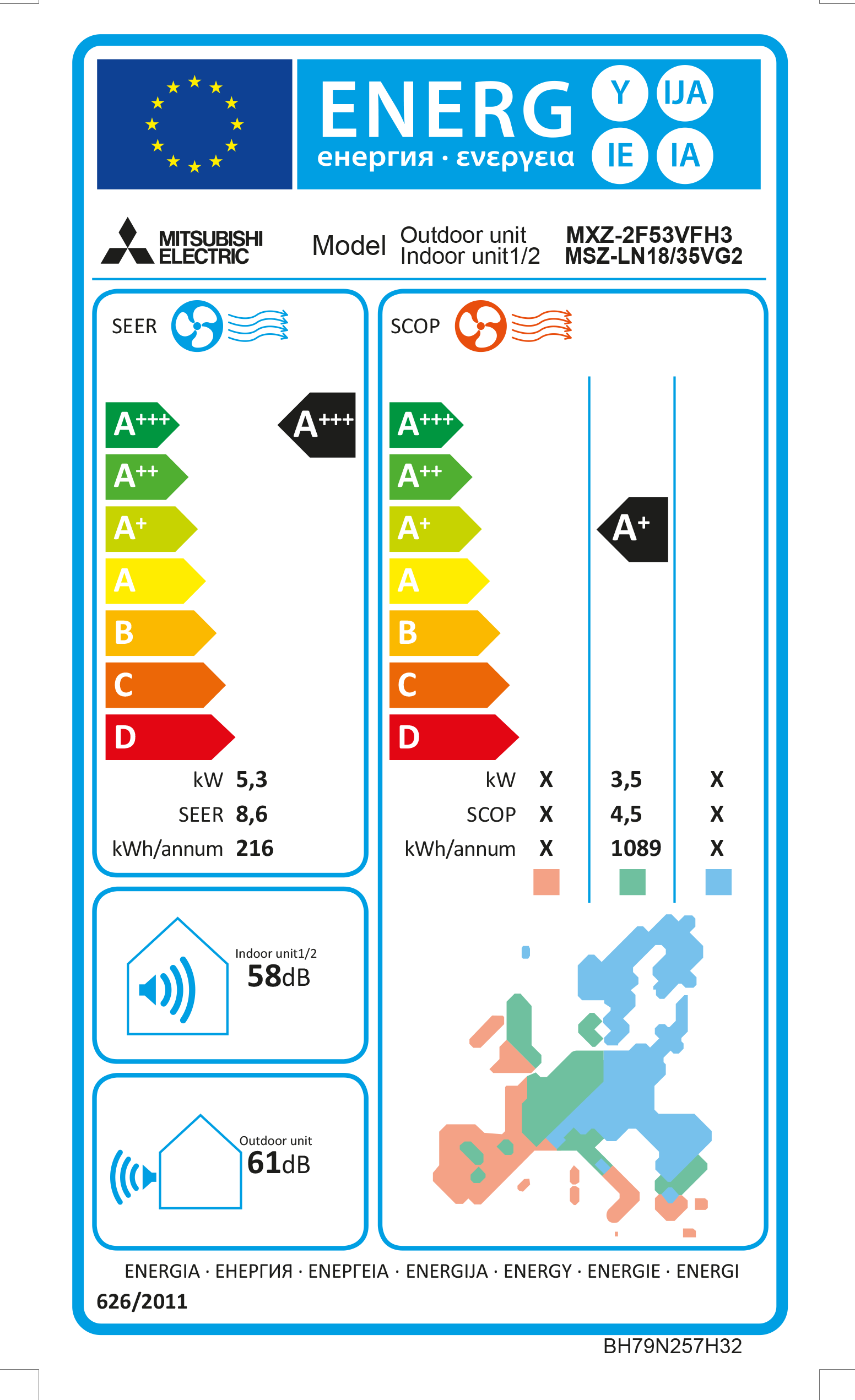 | Energieffektivitet Kall Luft | A++ |